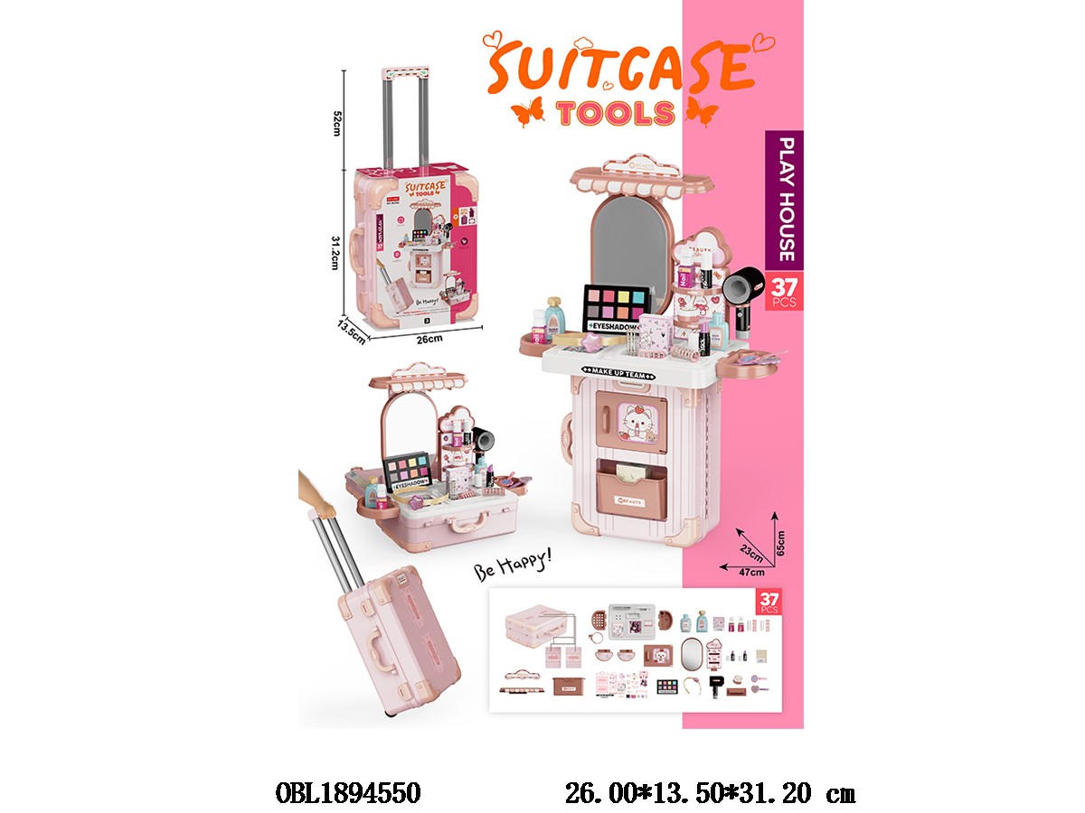 Three in one makeup storage suitcase set, fake plastic cosmetics cannot be applied