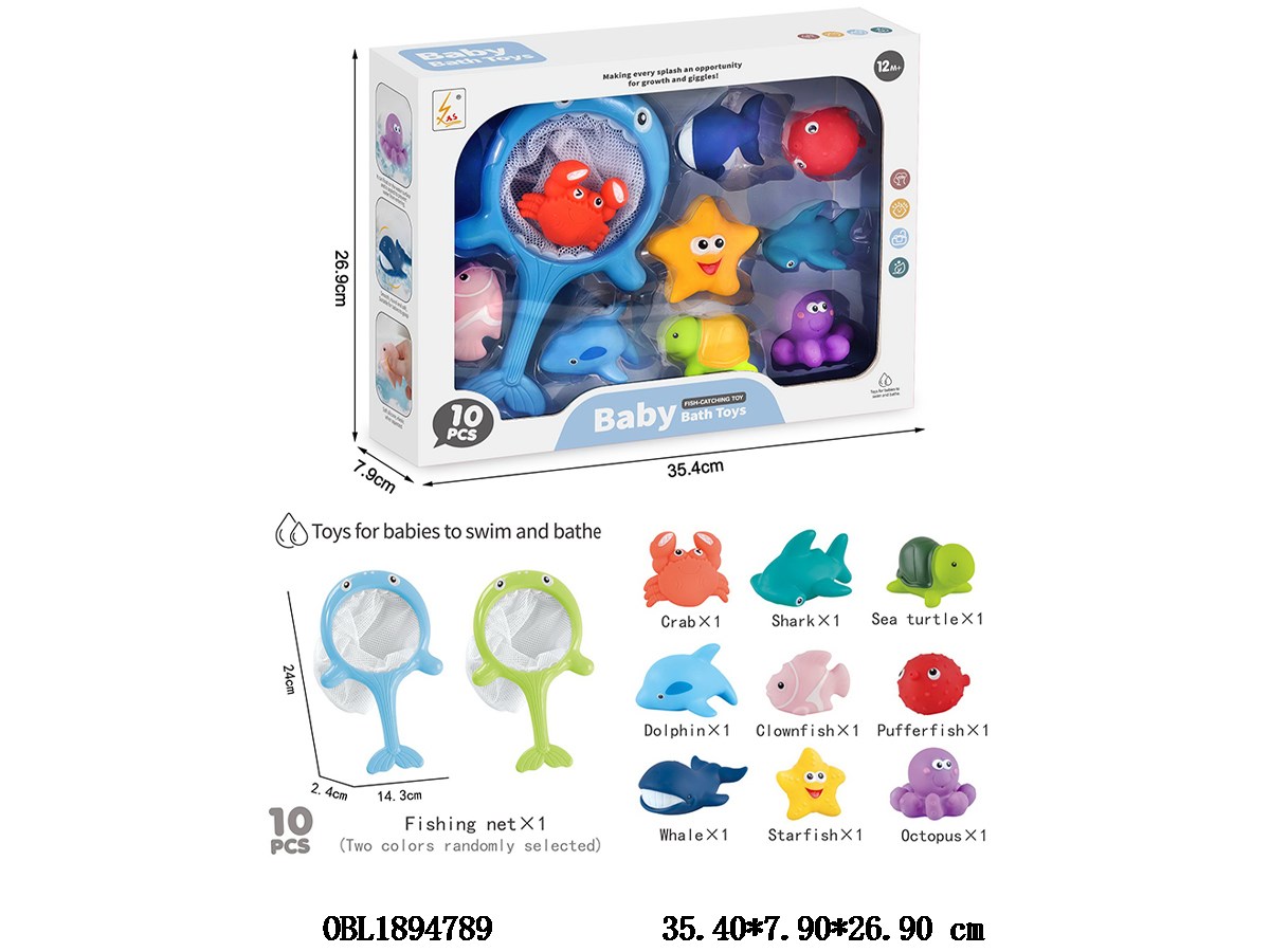 9 pieces of glue coated animals paired with fish fishing, color monochrome, random set