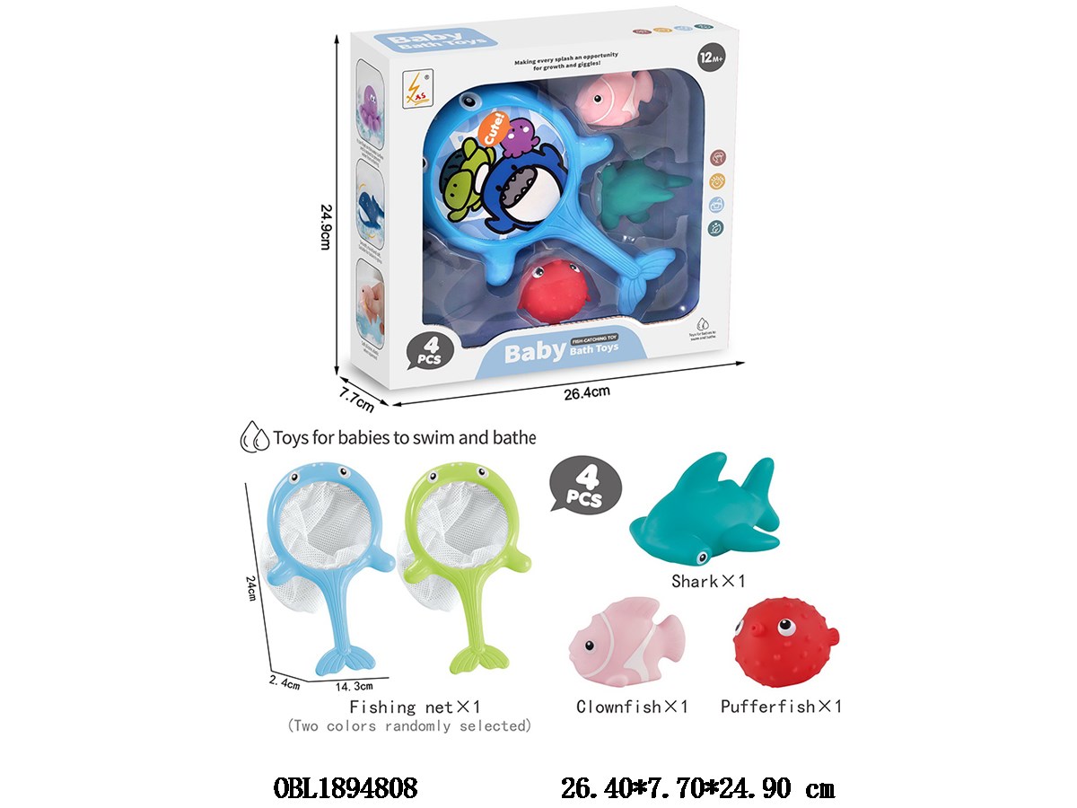 3 sets of glue coated animals paired with fish fishing, color monochrome, random set