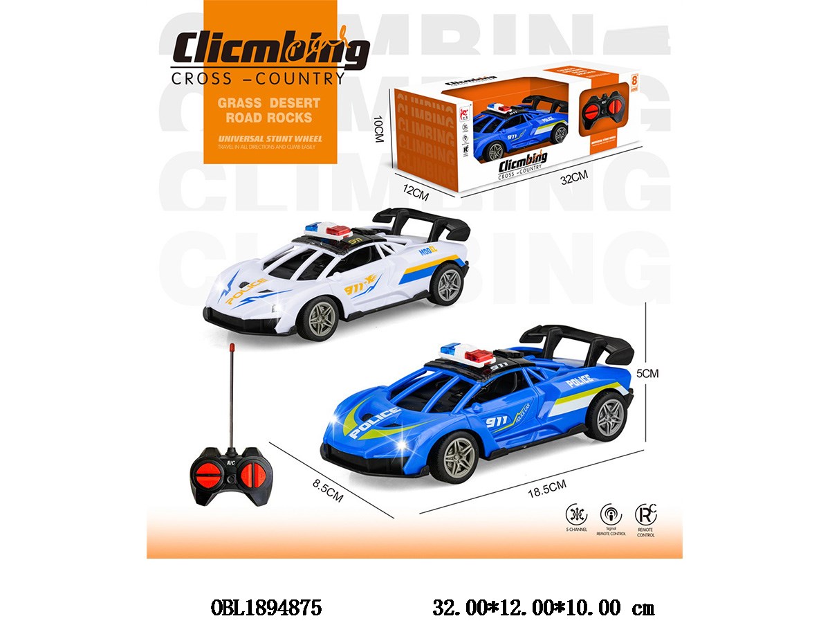 Home > R/C Car > Four way remote control police car with lights, body 3 * AA, no electricity included, remote control 2 * AA, no electricity included, 27 frequency, 2 color mixed design