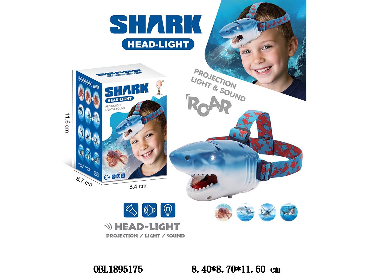 Shark headlights with projection lights, music 3 * AAA, no electricity included
