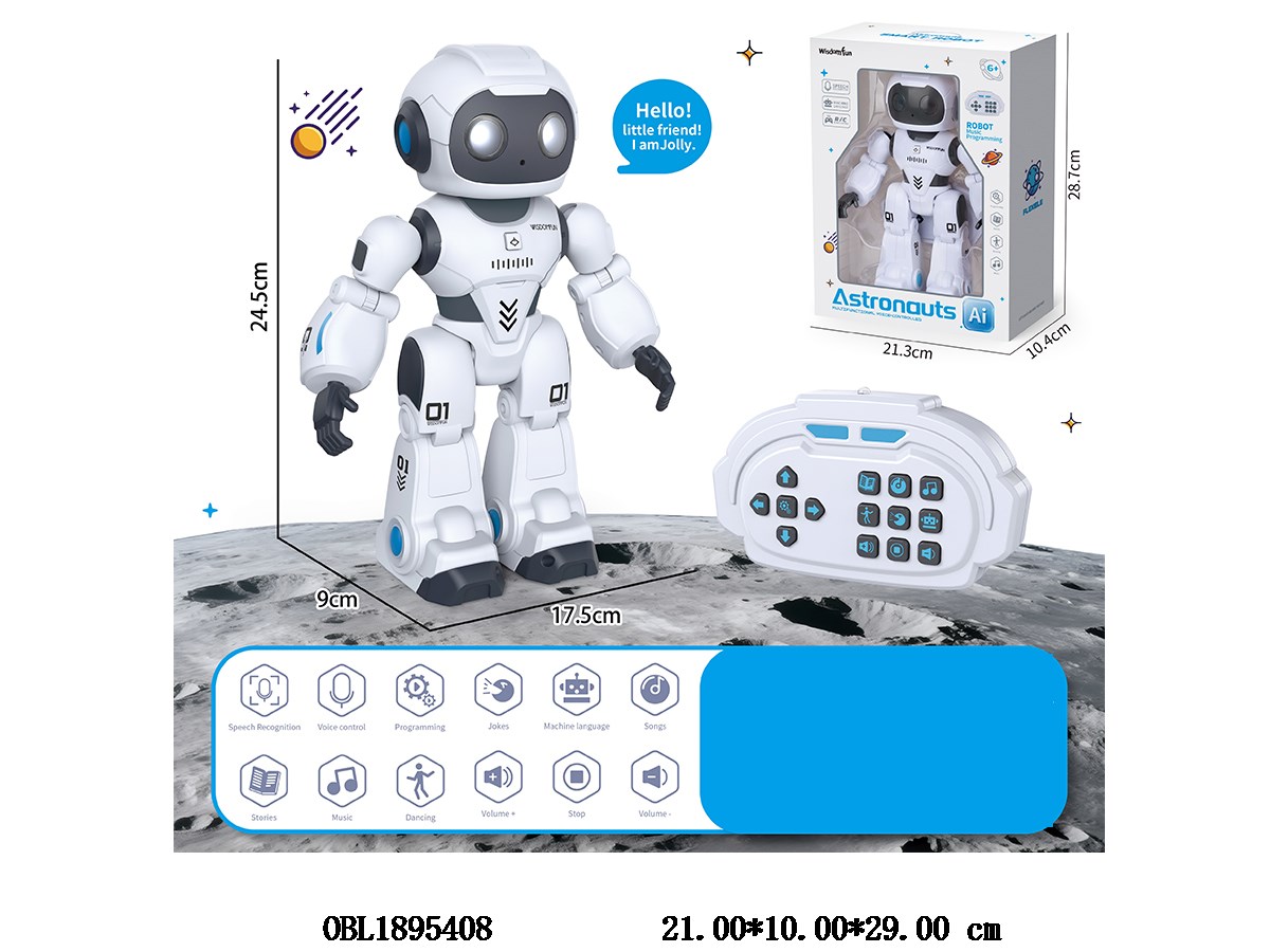 Home > R/C Robot > Infrared remote control robot with lights, music, singing, dancing, stories, AI voice control, USB cable body, 3.7V lithium battery included remote control 2 * AA, no power included