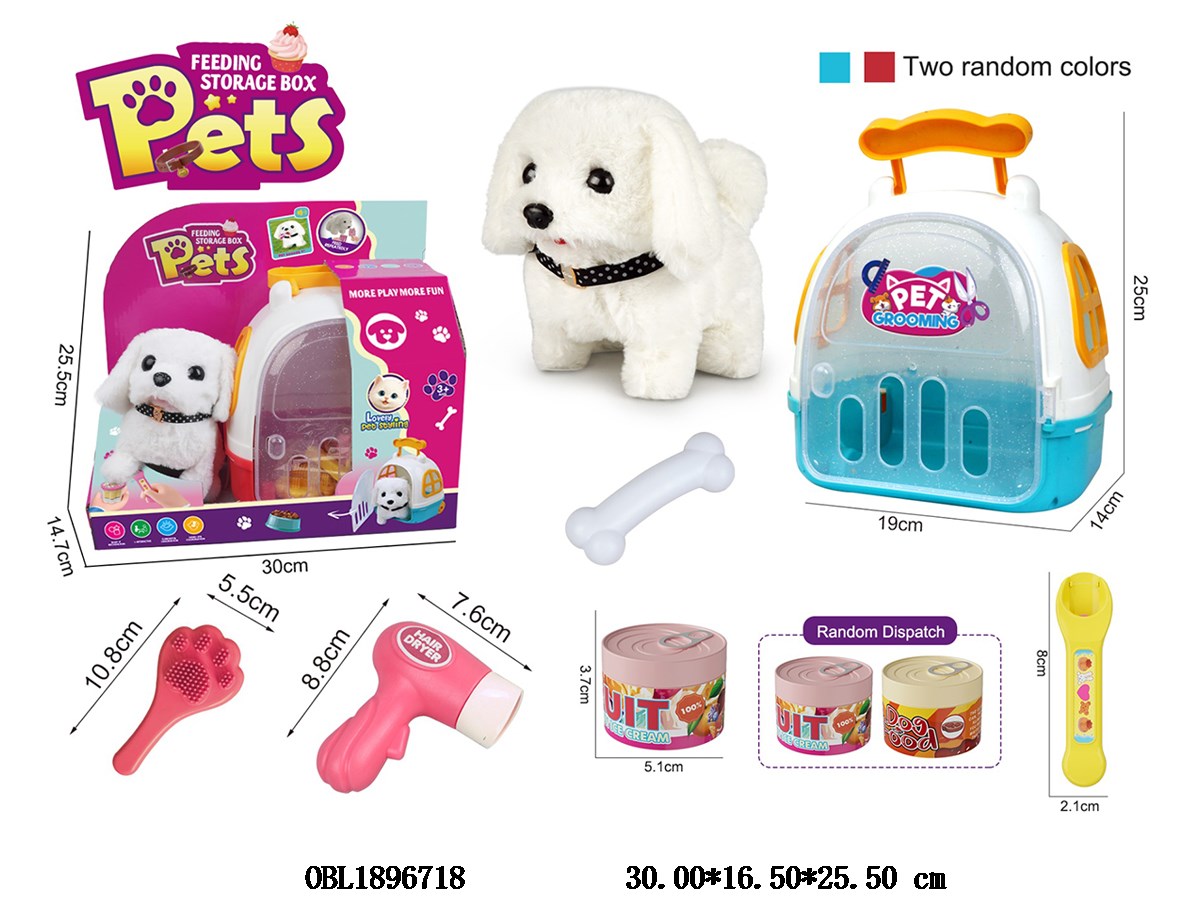 Electric plush puppy feeding set with barking 2 * AA, no electricity included, blue/pink, random feeding can, 2 colors, random