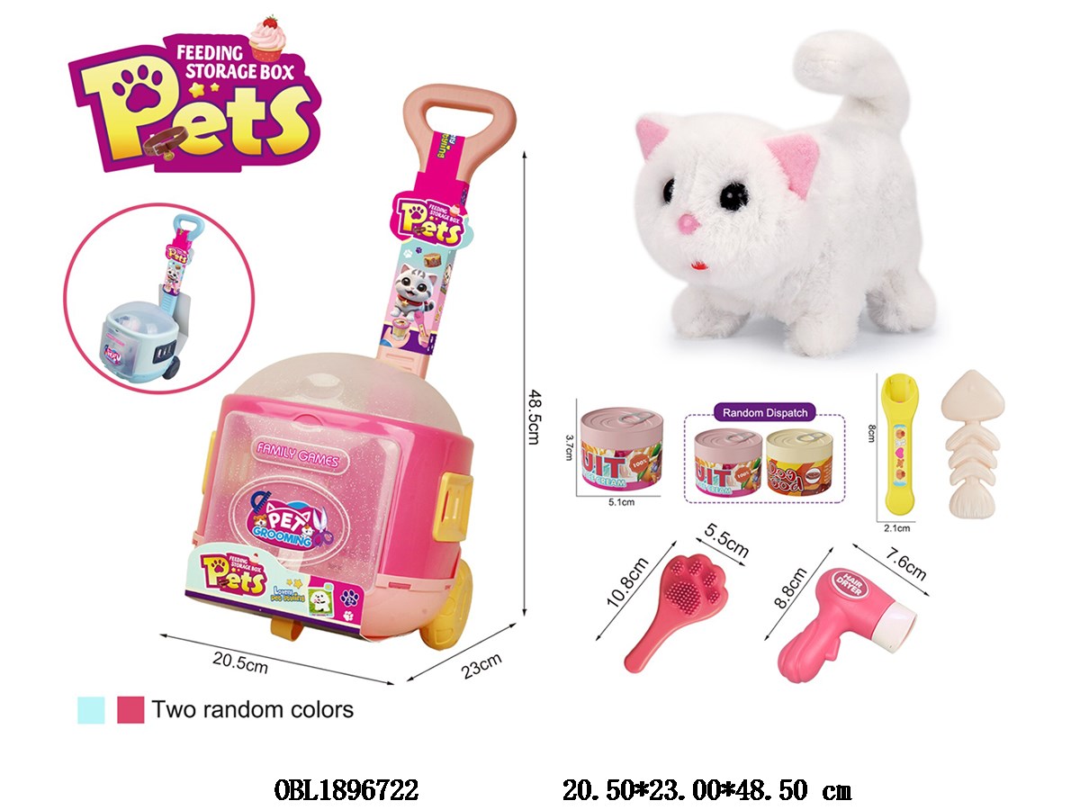 Home > B/O Animal > Electric Plush Kitten Feeding Set with Call 2 * AA Non electric Storage Trolley Box Blue/Pink Random Feeding Can 2 Colors Random
