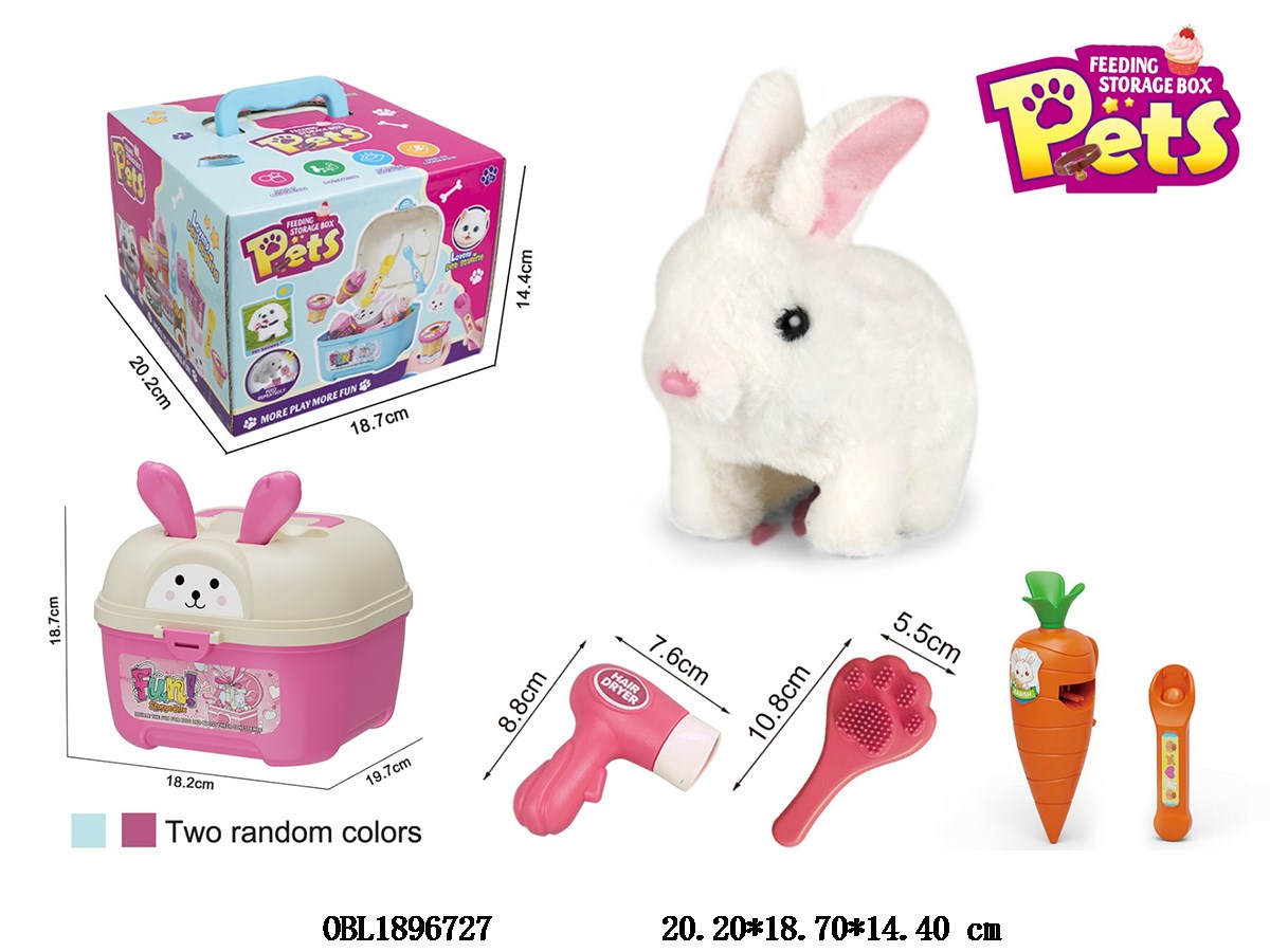 Home > B/O Animal > Electric Plush Rabbit Feeding Set with Call 2 * AA Non electric Storage Box Blue/Pink Random
