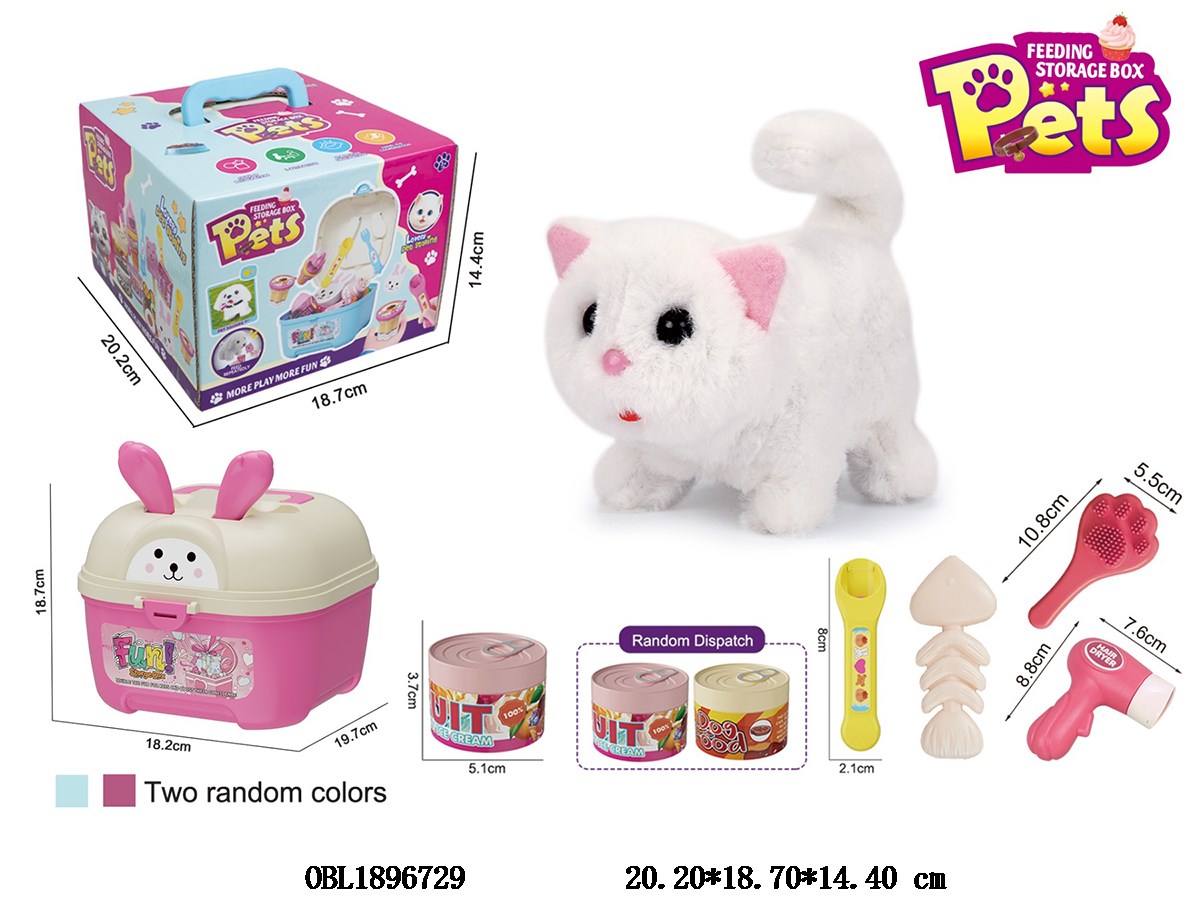 Electric Plush Kitten Feeding Set with Call 2 * AA Non electric Storage Box Blue/Pink Random Feeding Can 2 Colors Random
