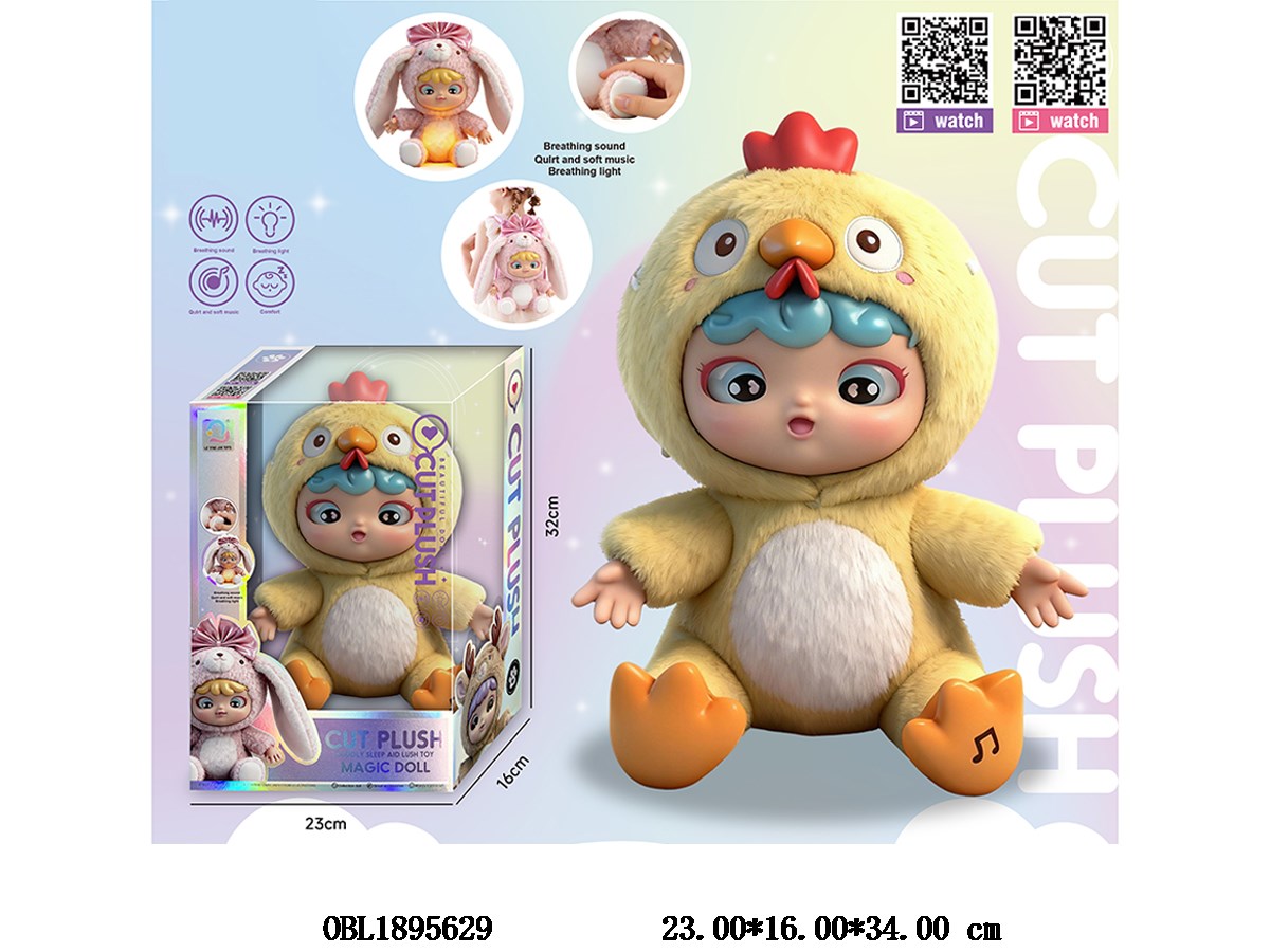 Home > B/O Dolls > Electric yellow chicken heartbeat doll with lighting, music, 4 sound IC, 3 * AAA, non electric backpack with storage function