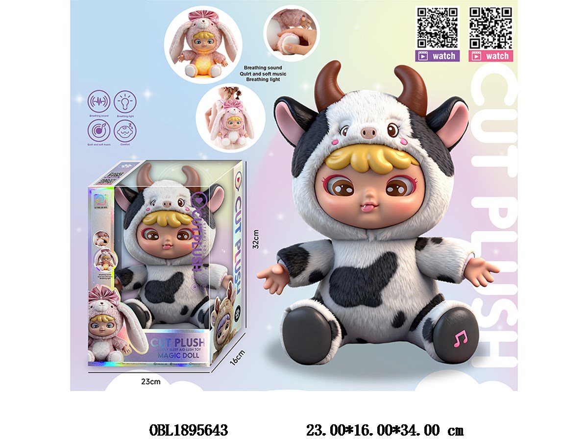 Electric black and white cow heartbeat doll with lighting, music, 4 sound IC, 3 * AAA, non electric backpack with storage function