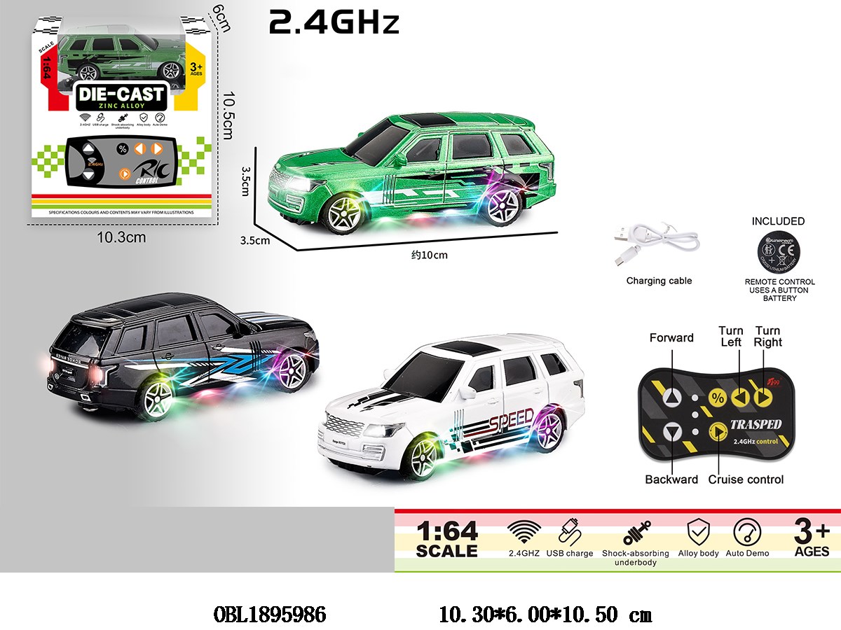 Home > R/C Car > 1: 64 alloy remote control car with lights and USB cable, body lithium battery pack remote control 1 * CR2032 pack power, 2.4G frequency, 3-color hybrid