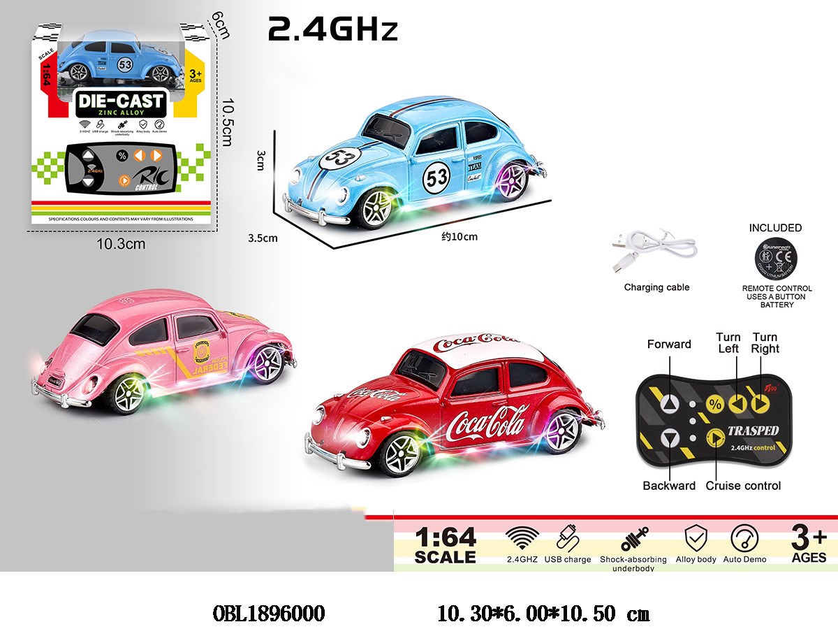 Home > R/C Car > 1: 64 alloy remote control car with lights and USB cable, body lithium battery pack remote control 1 * CR2032 pack power, 2.4G frequency, 3-color hybrid