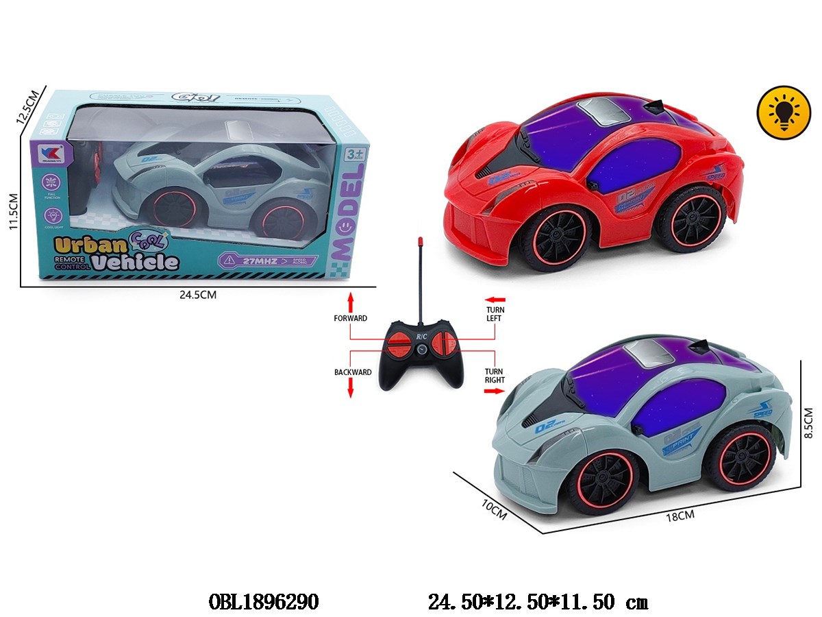 Q version 1:20 four-way remote control car with lights, body 3 * AA without power, remote control 2 * AA without power, 27 frequency, 2 color mixed design