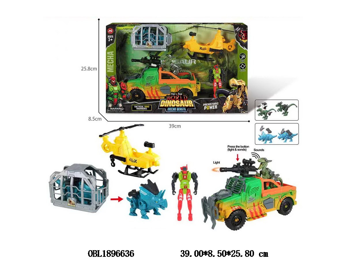 Robot/Dinosaur Set with Sliding Cannon with Sound and Light 3 * AG13 Package Electric