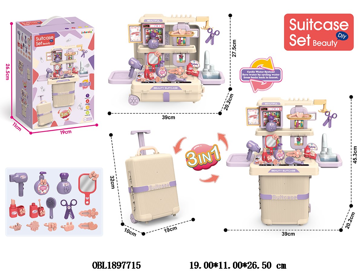 Home > Jewellery & Cosmetic Sets > Three in one jewelry table suitcase set
