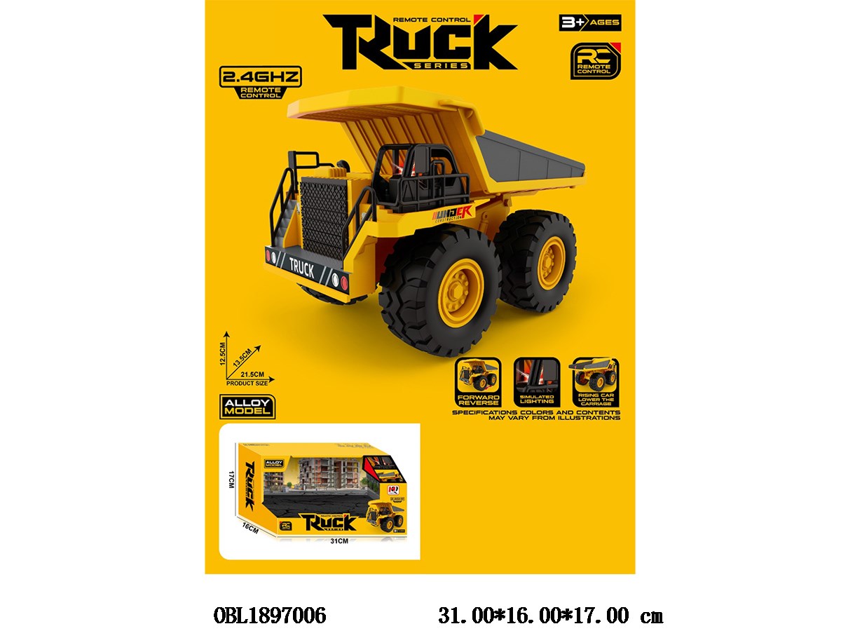 Home > R/C Car > Remote control simulation soil carrier with lighting and music, equipped with USB cable, body 3.7V lithium battery included remote control 2 * AA, no power included, 2.4G frequency