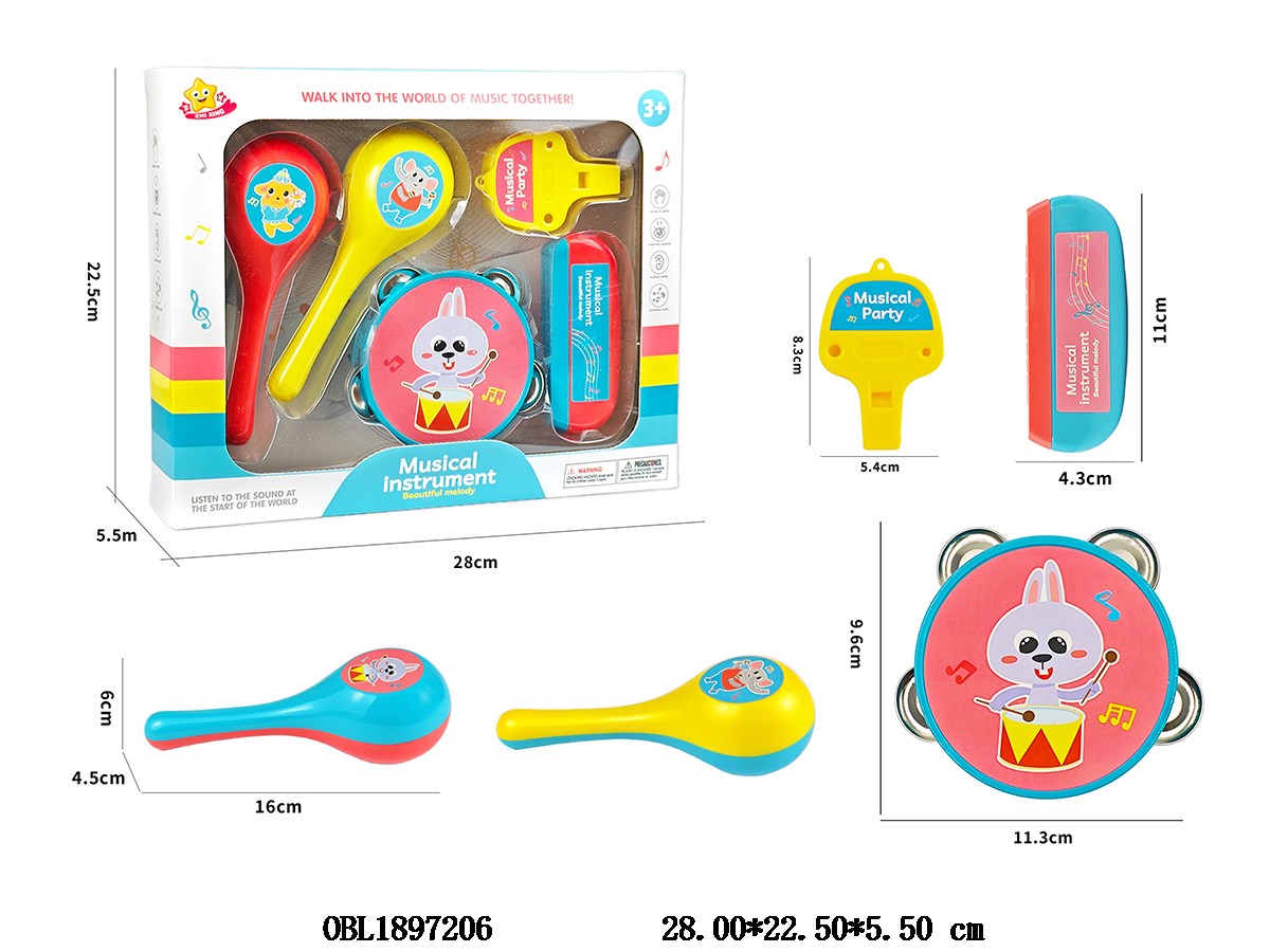 Home > Musical Instruments Suit > Instrument combination set, whistle, sand hammer, mouth organ, bell drum