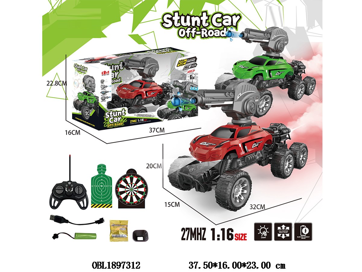 Home > R/C Car > Seven way remote control climbing car suit with light spray can launch water bomb with USB cable body 3.7V lithium battery pack electric remote control 2 * AA non electric 27 frequency two color mixed