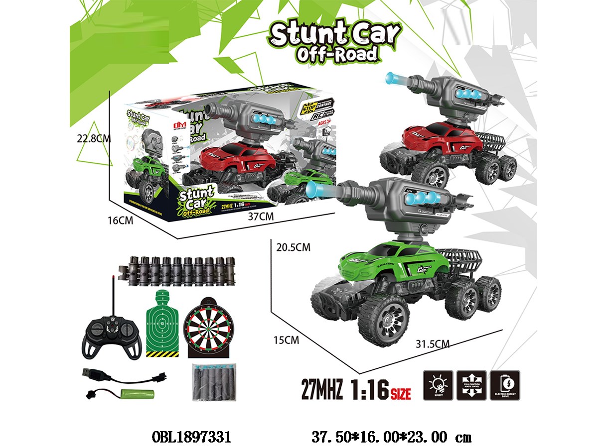 Home > R/C Car > Five way remote control climbing car set with lights, capable of launching soft bullets, equipped with USB cable, body 3.7V lithium battery included remote control 2 * AA without power, 27 frequency, 2 color mixed
