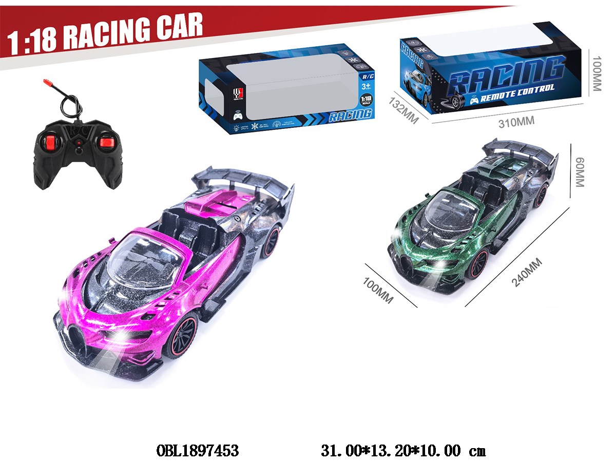 Home > R/C Car > 1: 18 four-way remote control car with lights, body 4 * AA, no electricity included, remote control 2 * AA, no electricity included, 27 frequency, 2 color mixed design