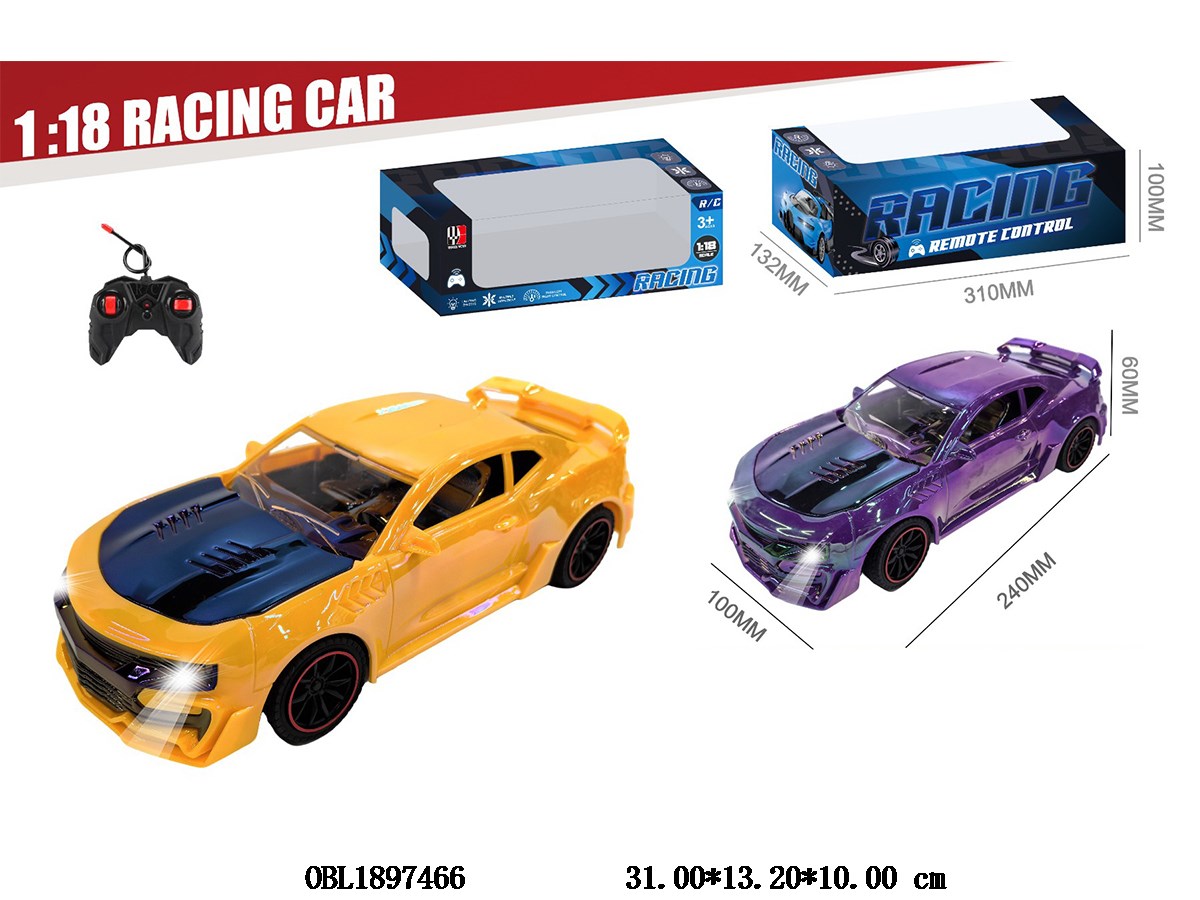Home > R/C Car > 1: 18 four-way remote control car with lights, body 4 * AA, no electricity included, remote control 2 * AA, no electricity included, 27 frequency, 2 color mixed design