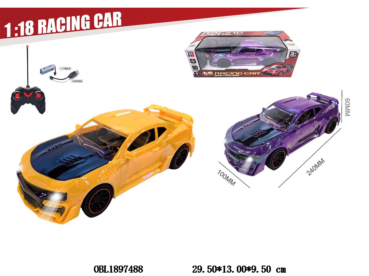 1: 18 four-way remote control car with lights and USB cable. 3.7V car body with power included remote control 2 * AA without power included. 27 frequency, 2 color mixed
