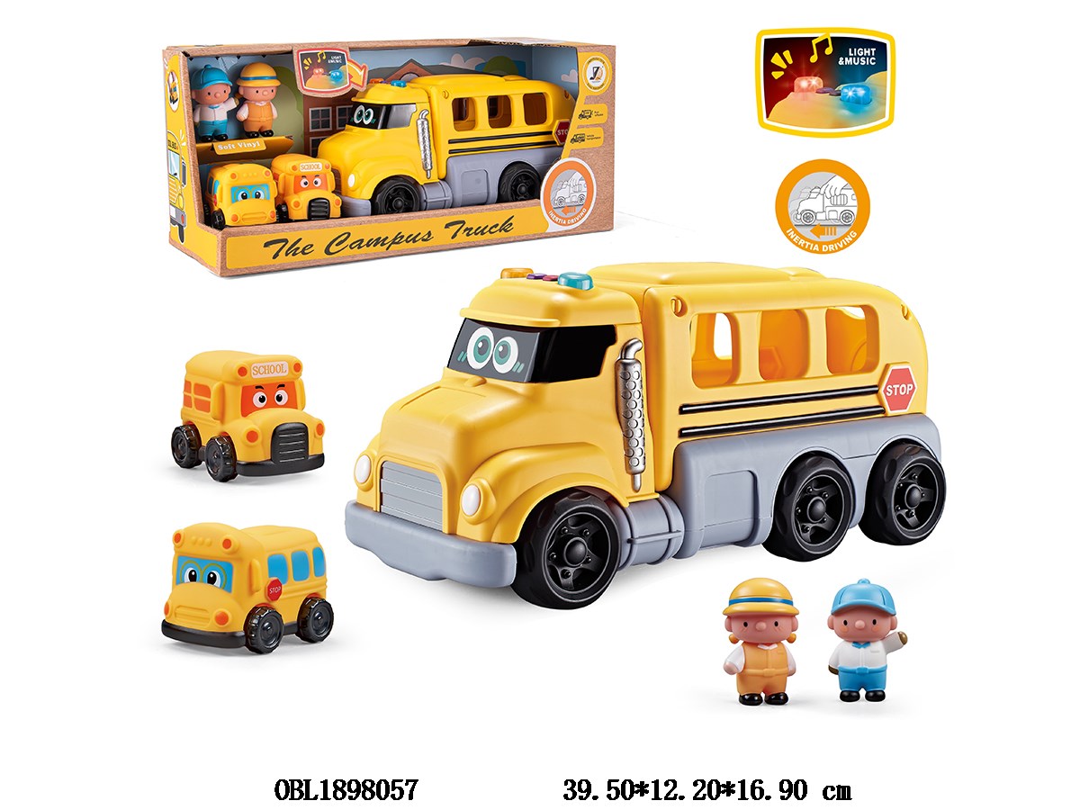 Home > F/P Car > Inertial school bus set with lighting and music, equipped with 2 sliding cars, 3 * AG13, including electricity