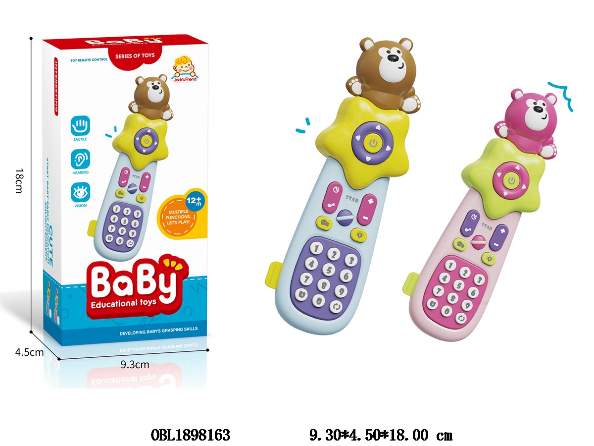 Little Bear Early Education Remote Control with Lighting, Music, 2 * AAA, Power Not included, Pink/Blue