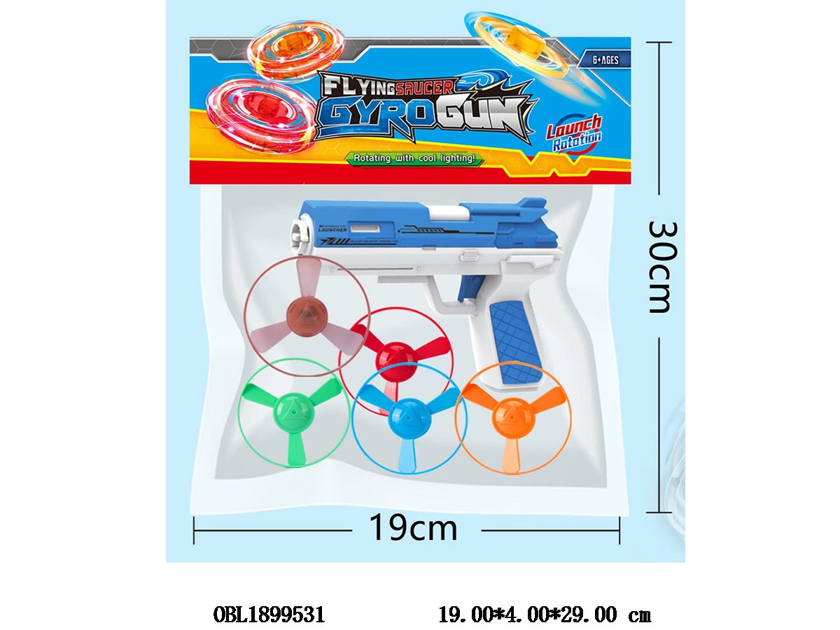 Home > UFO Gun > Flying saucer gun with 1 * light flying saucer 2 * AG3, electric package with 4 flying saucers blue/yellow/blue mixed