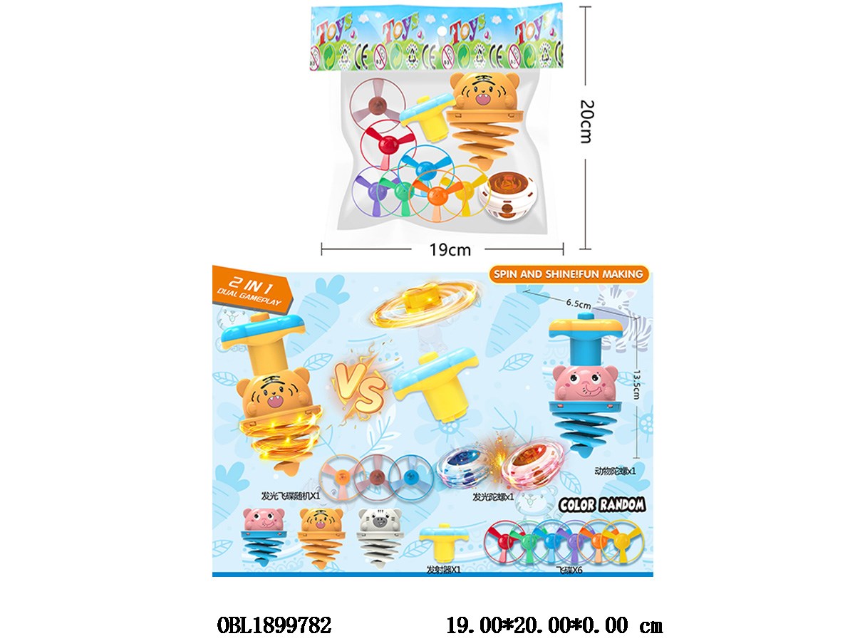 Gyro UFO Set with 1 * Light Gyroscope 1 * Light UFO 1 * Spring Animal Gyroscope Total 6 * AG3 Package with 6 Flying Saucers