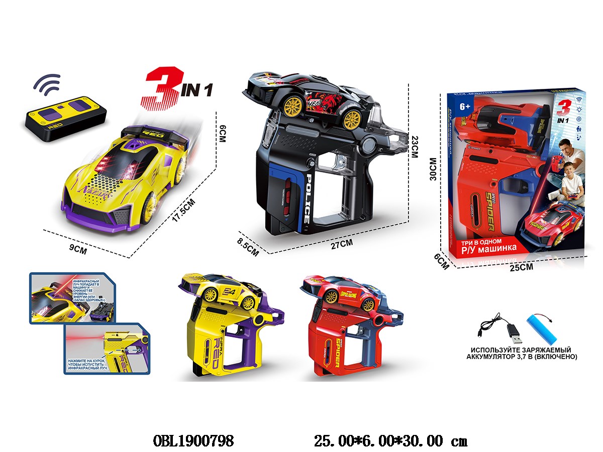 Russian version of infrared gun shooting remote control car with lighting and sound effects, equipped with USB cable, body 3.7V lithium battery included remote control 2 * AA without power, 2.4G frequency, 3-color hybrid