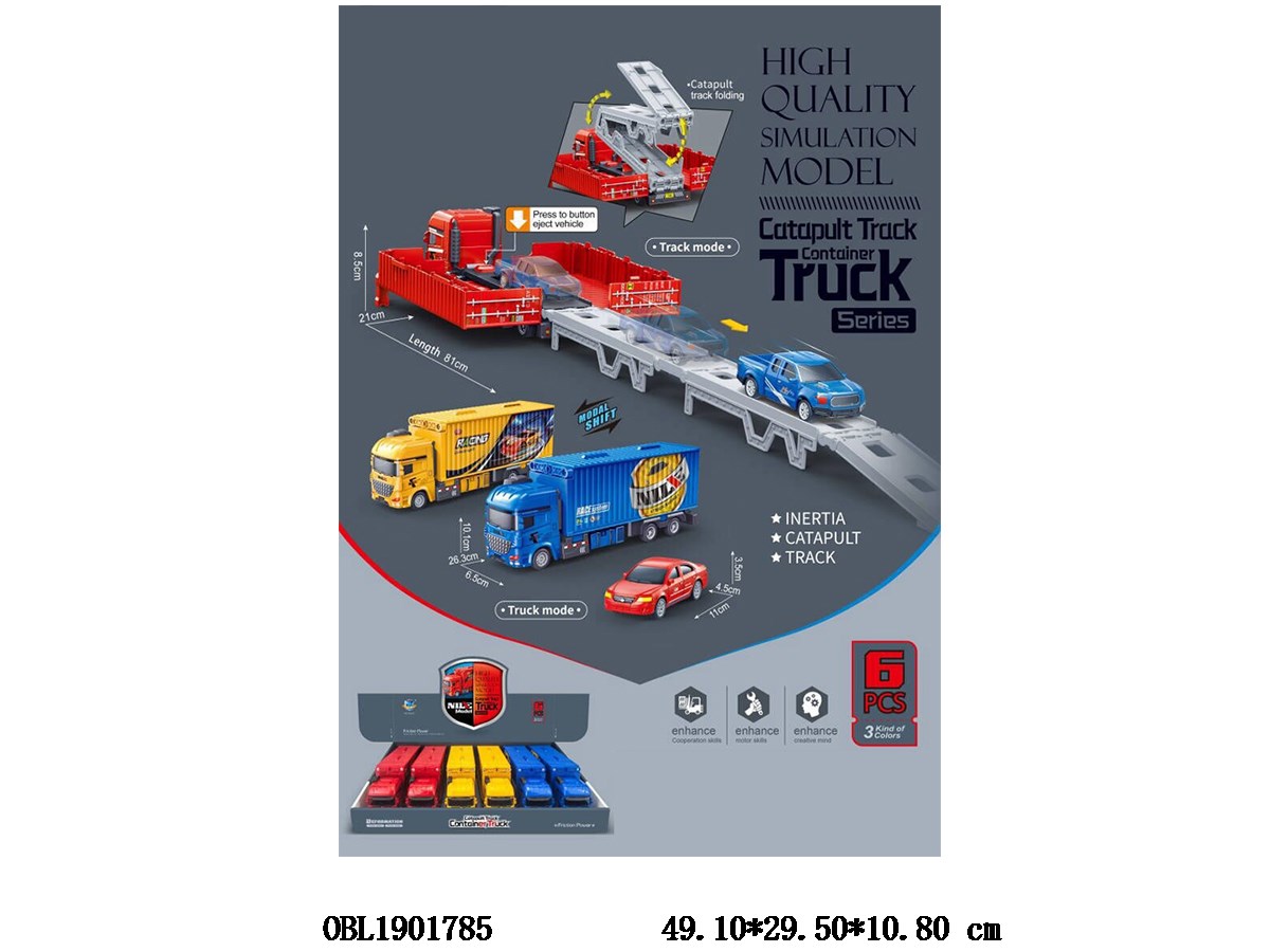 Inertial catapult deformation rail car set, 3 colors mixed, 6 pieces per display box