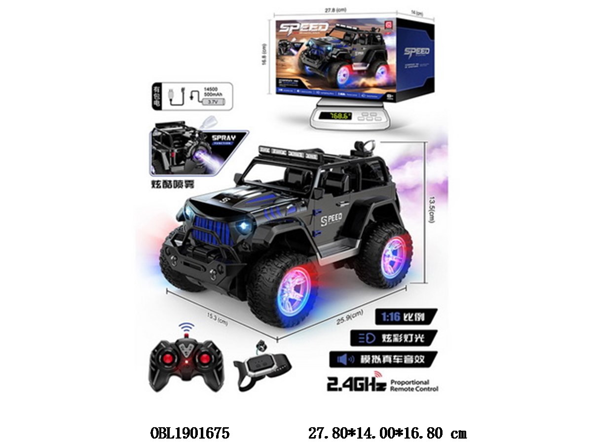 Home > R/C Car > Dual control 1:16 remote control off-road vehicle with light and sound spray comes with a small shovel with USB cable body 3.7V lithium battery pack electric remote control 2 * AA without electric watch remote control 2 * AAA without electric watch 2.4G frequency