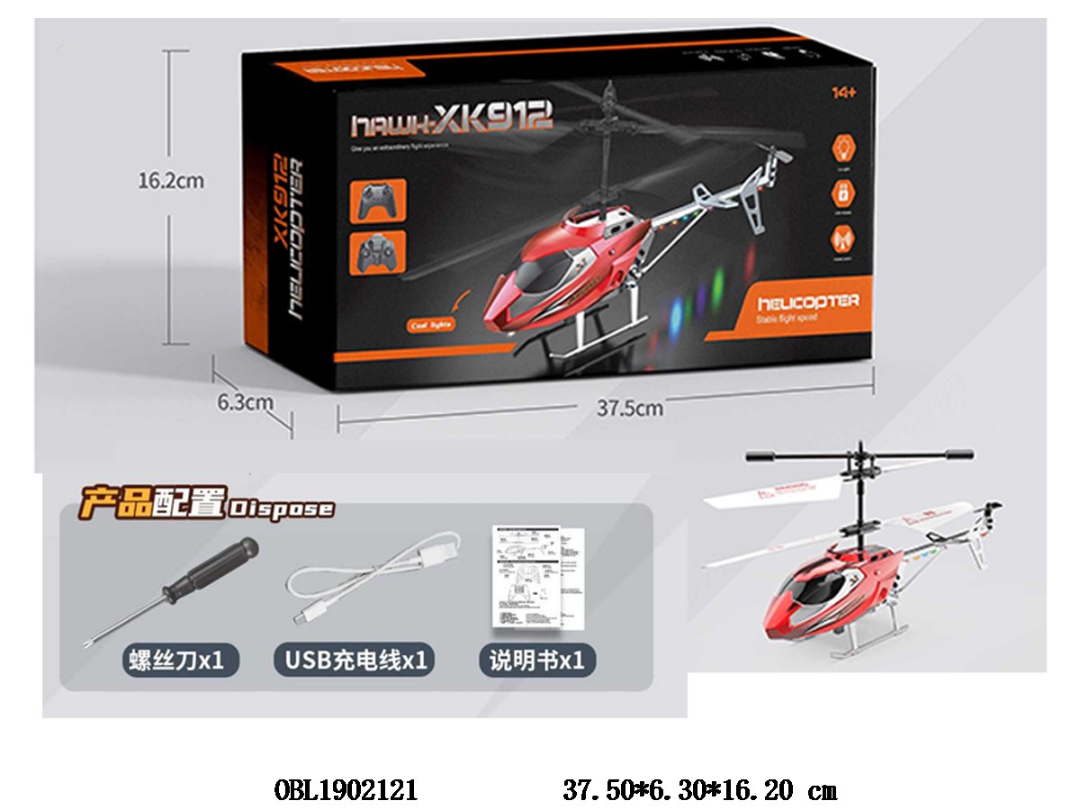 2.5-way alloy remote control helicopter with lights, body 3.7V lithium battery with power included remote control, 3 * AAA battery without power included, red infrared