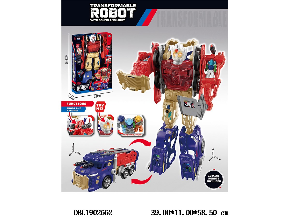 Home > Transformation > Transformed car with lights, sound, and 10 small robots 2 * AG13, including electricity