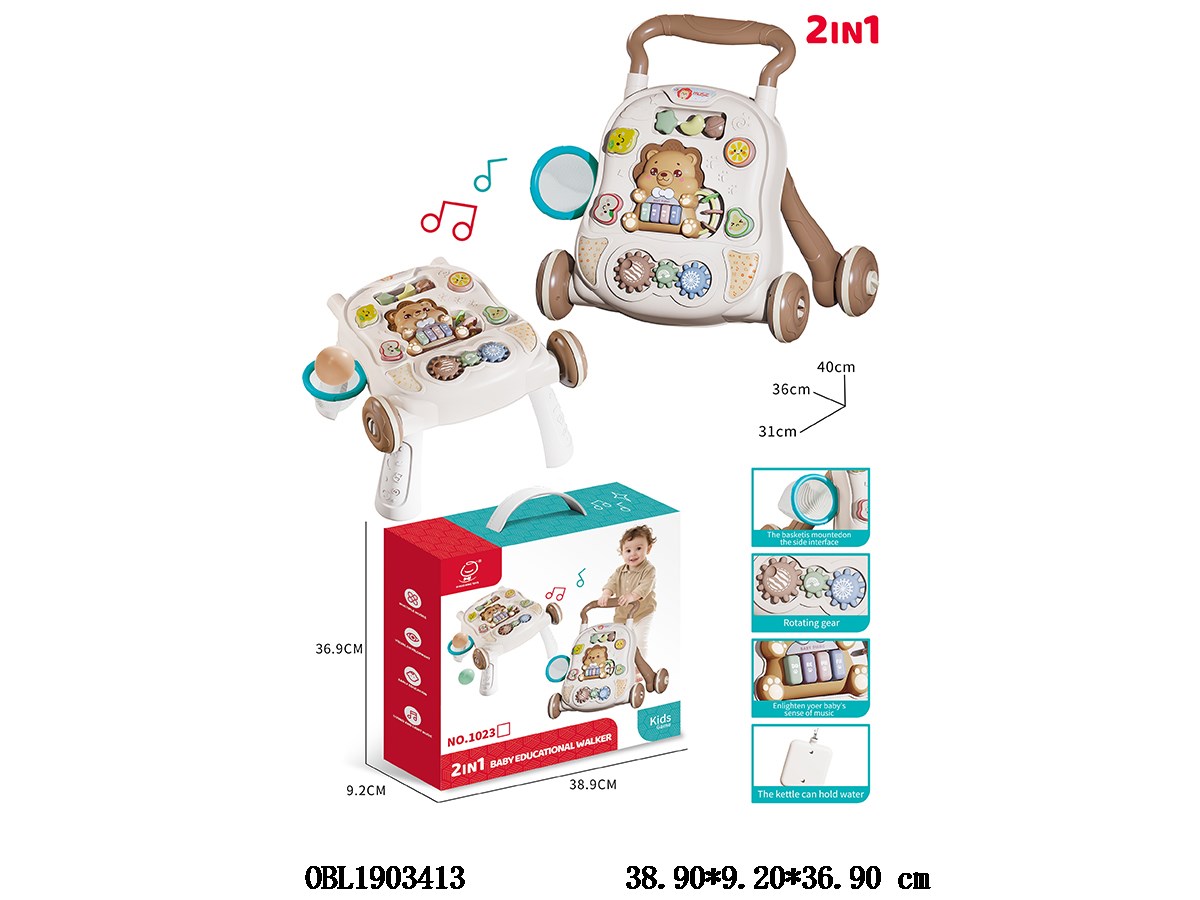 2-in-1 walker/game table set with lighting and music, 3 * AAA, no electricity included