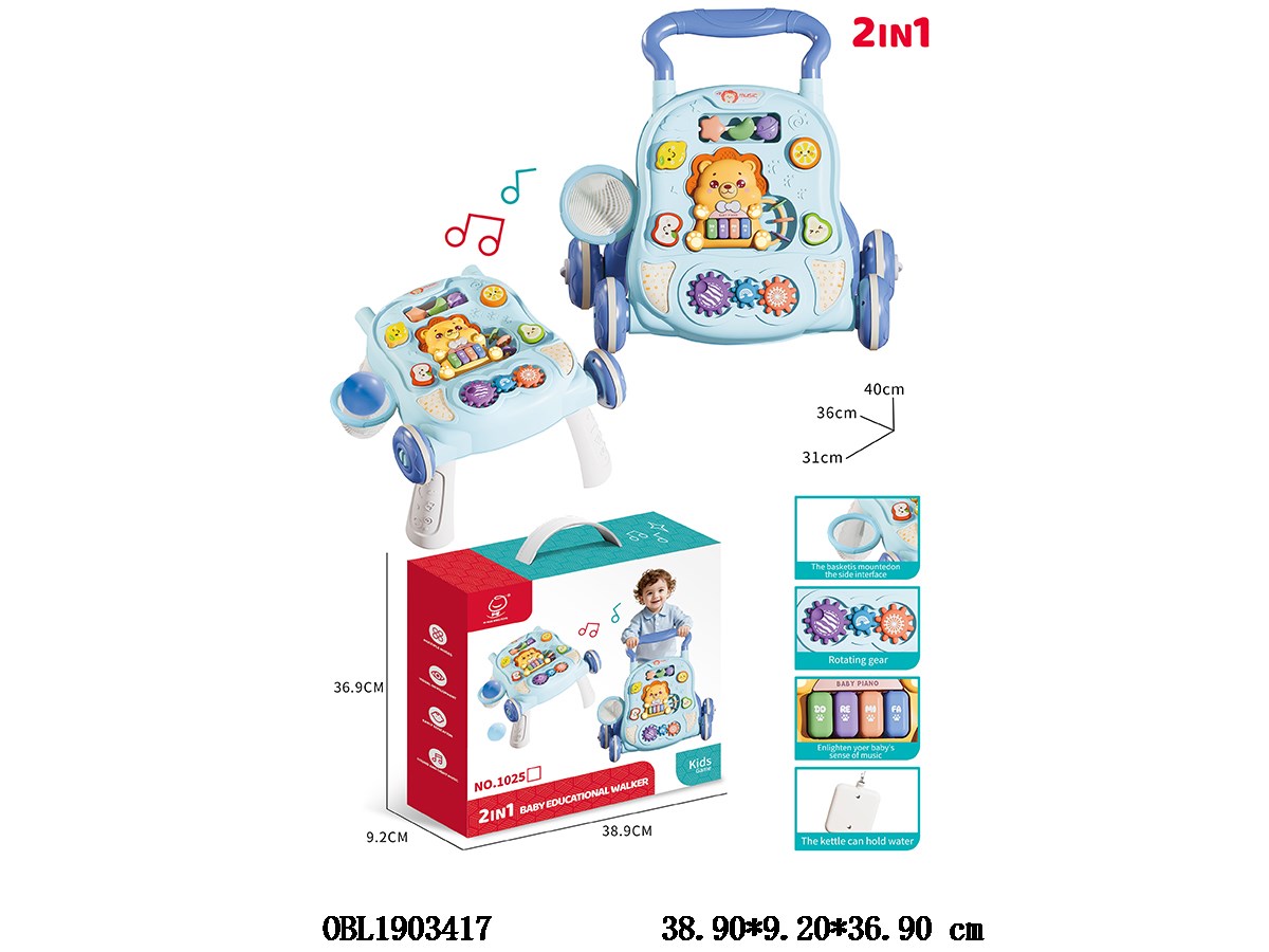 2-in-1 walker/game table set with lighting and music, 3 * AAA, no electricity included