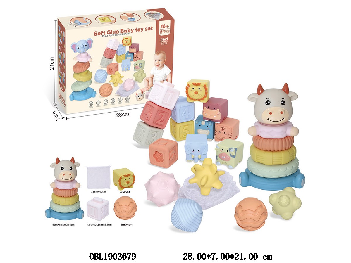 Vinyl ball/block/animal block/stacking music set with storage bag