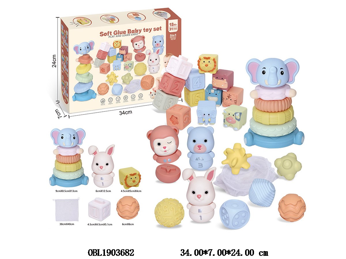 Vinyl ball/block/animal block/puzzle animal/stacking music set with storage bag