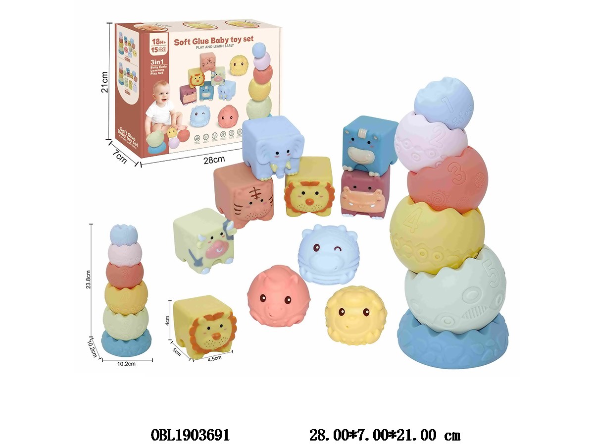 Home > Soft Plastic Animals > Vinyl Animal/Animal Blocks/Stacked Ball Set 15PCS