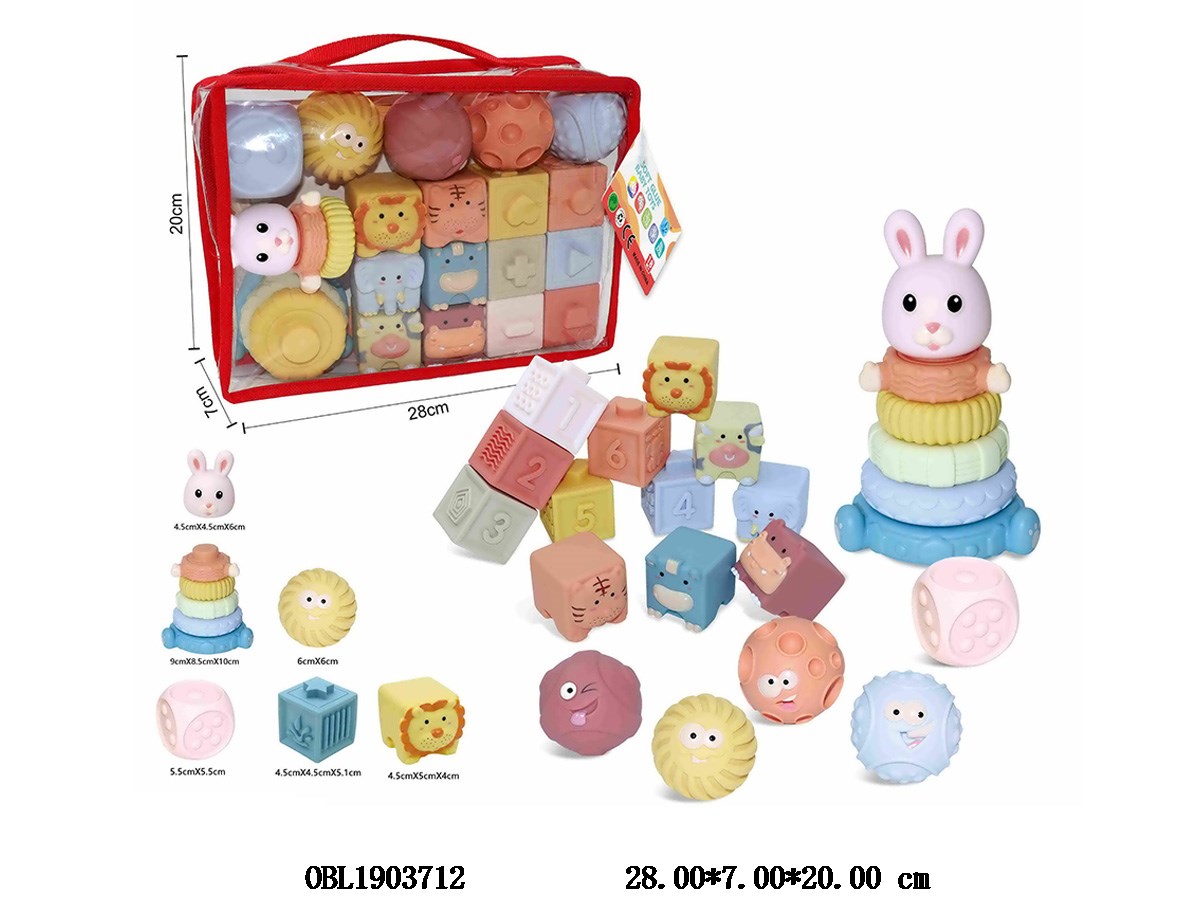 Vinyl ball/block/animal block/stacking music set with hang card