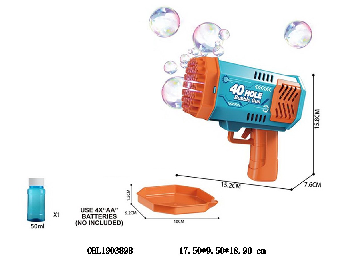 Orange blue electric bubble gun with 1 bottle of 50ml bubble water 4 * AA, not including electricity
