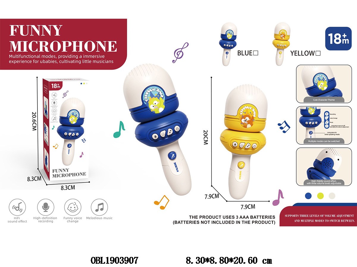 Children s microphone with music, 3 * AAA, no power included, 2-color mixed design