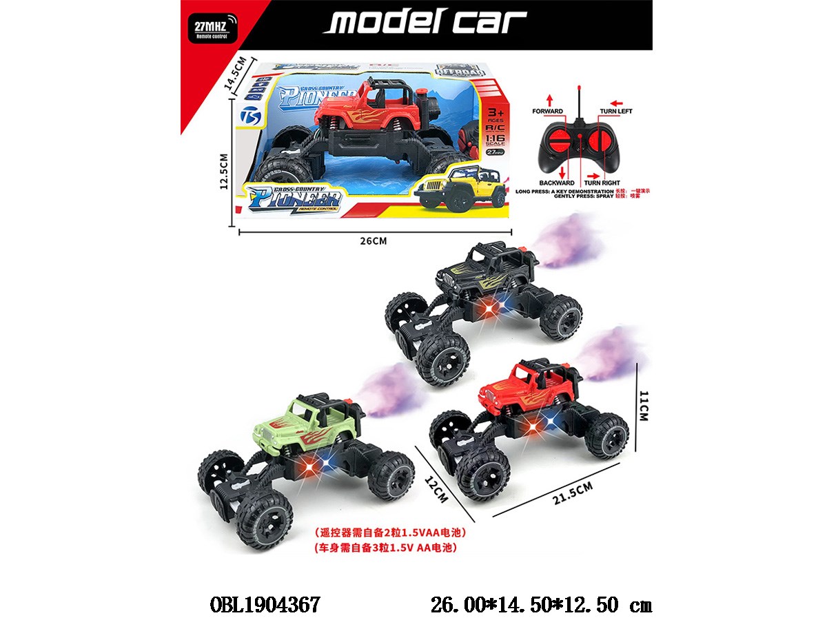 Six way remote control vehicle with light spray one button demo body 3 * AA without electric remote control 2 * AA without electric remote control 27 frequency three color mixed