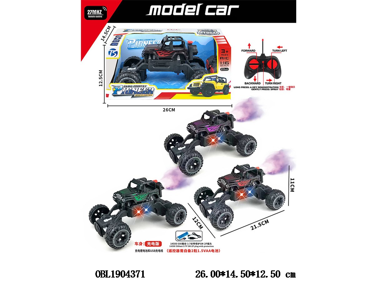 Six way remote control car with light spray one button demonstration with USB cable body 3.7V lithium battery pack electric remote control 2 * AA non electric 27 frequency three color mixed