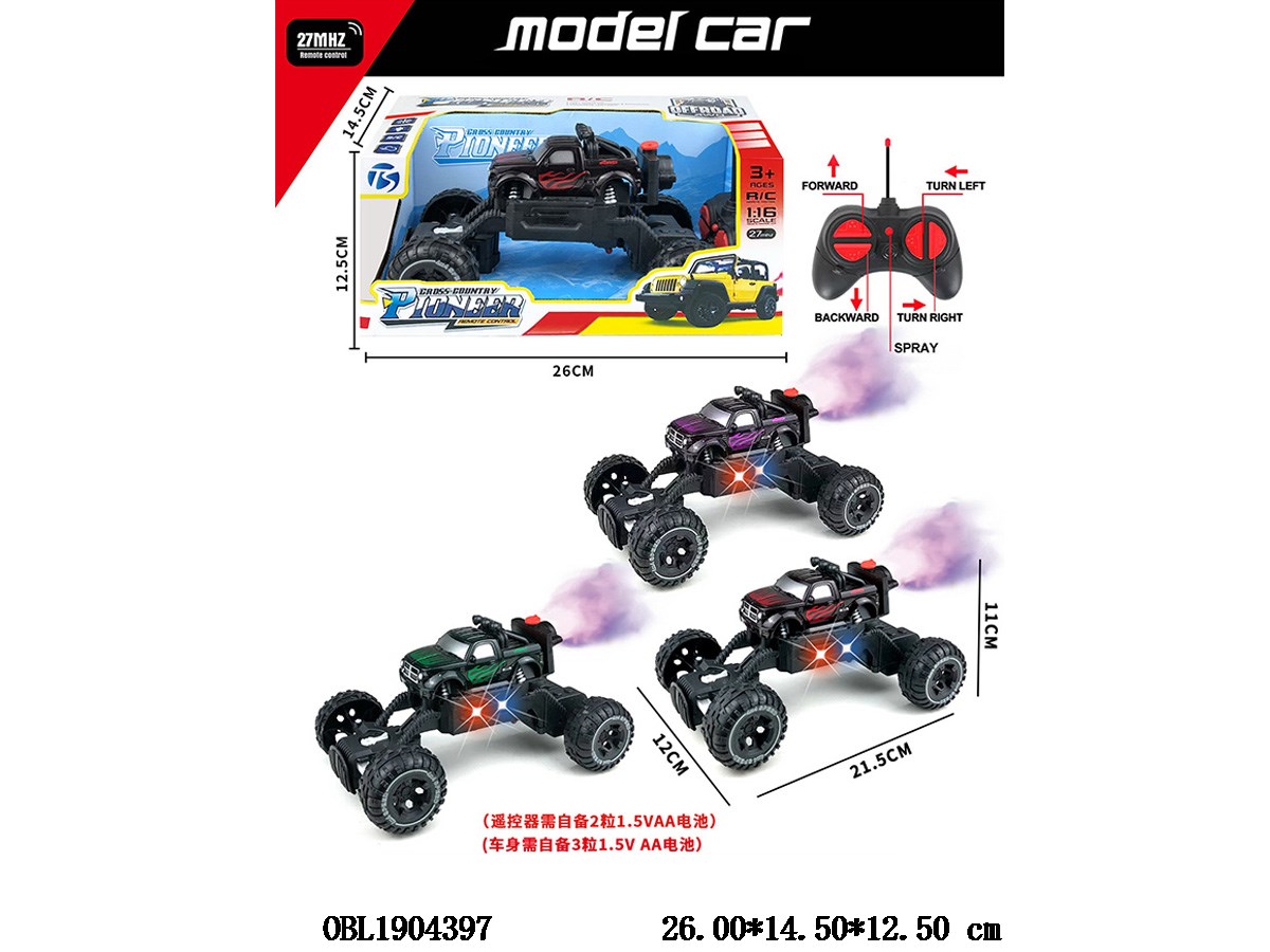 Home > R/C Car > Five way remote control vehicle with light spray body 3 * AA without electric remote control 2 * AA without electric control 27 frequency and three color mixed installation