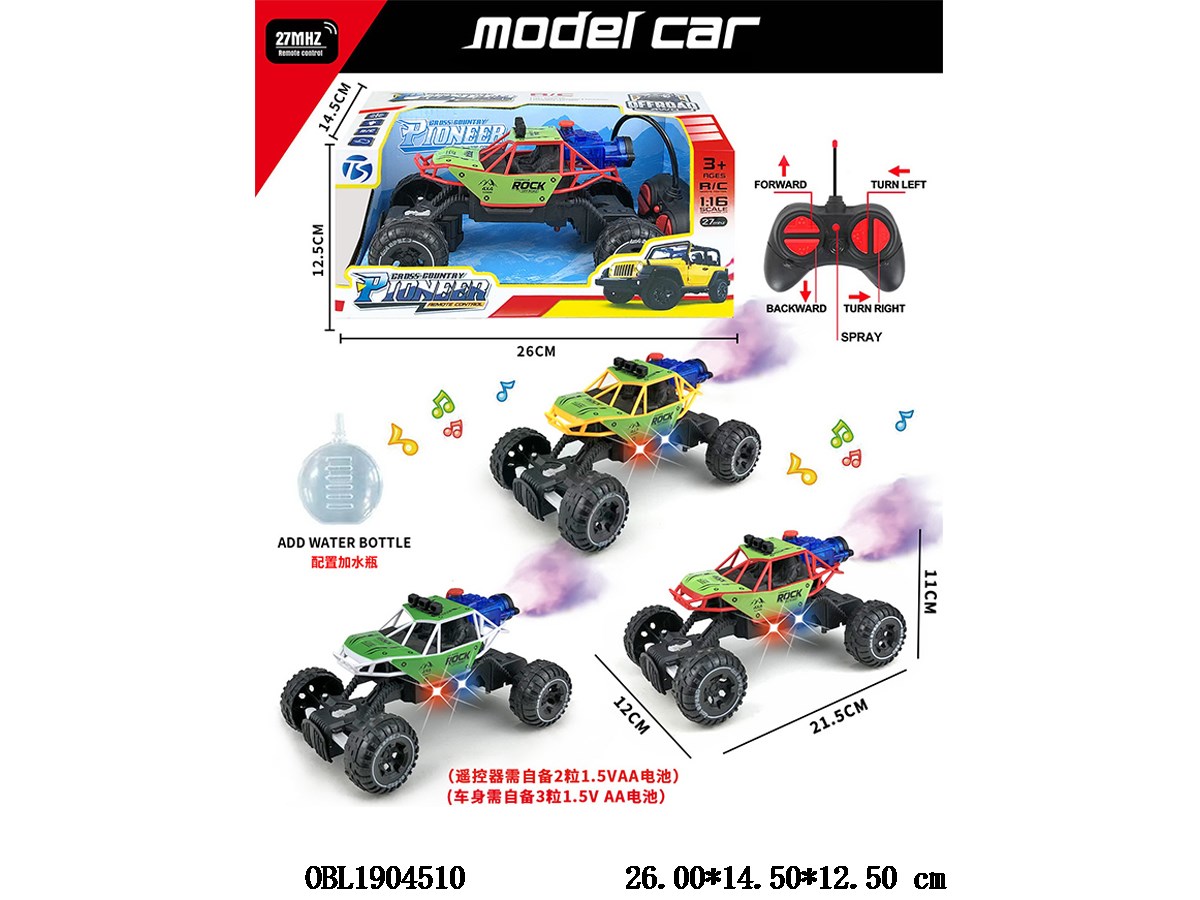 Home > R/C Car > Five way remote control vehicle with light, music, spray body 3 * AA without electric remote control 2 * AA without electric control 27 frequency, three color mixed installation