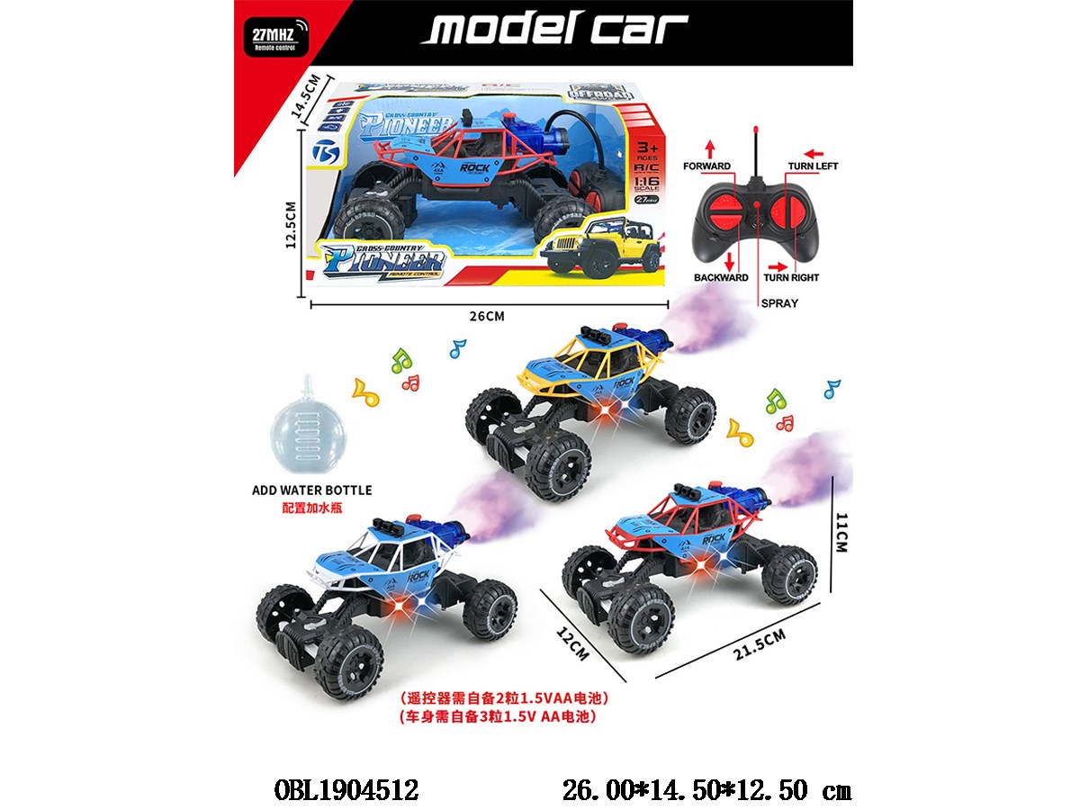 Home > R/C Car > Five way remote control vehicle with light, music, spray body 3 * AA without electric remote control 2 * AA without electric control 27 frequency, three color mixed installation