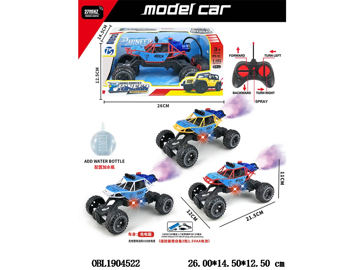 Five way remote control car with light spray with USB cable body 3.7V lithium battery pack electric remote control 2 * AA non power pack 27 frequency three color mixed pack