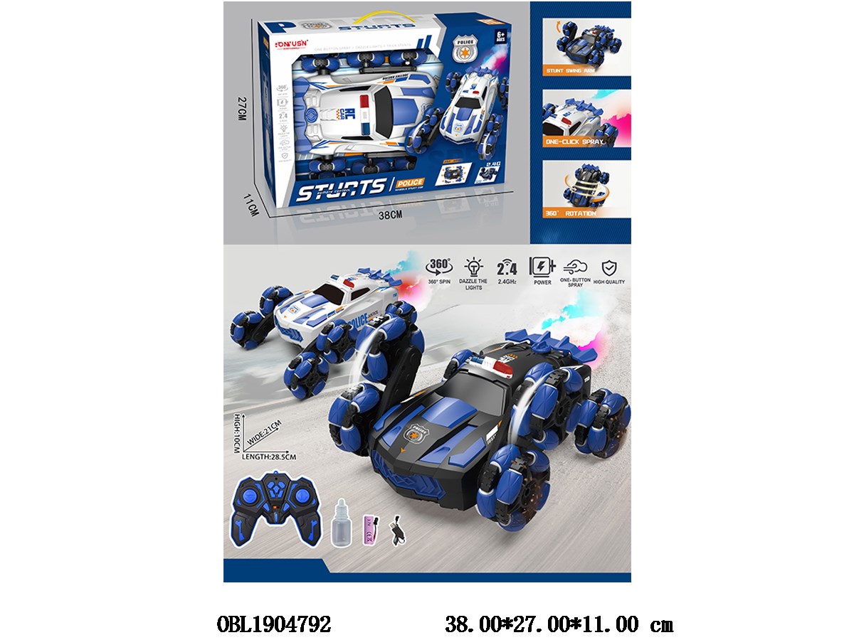 Six wheel remote control stunt side driving with light music spray with USB cable body 3.7v lithium battery pack electric remote control 2 * AA non electric 2.4G frequency two color mixed single remote control