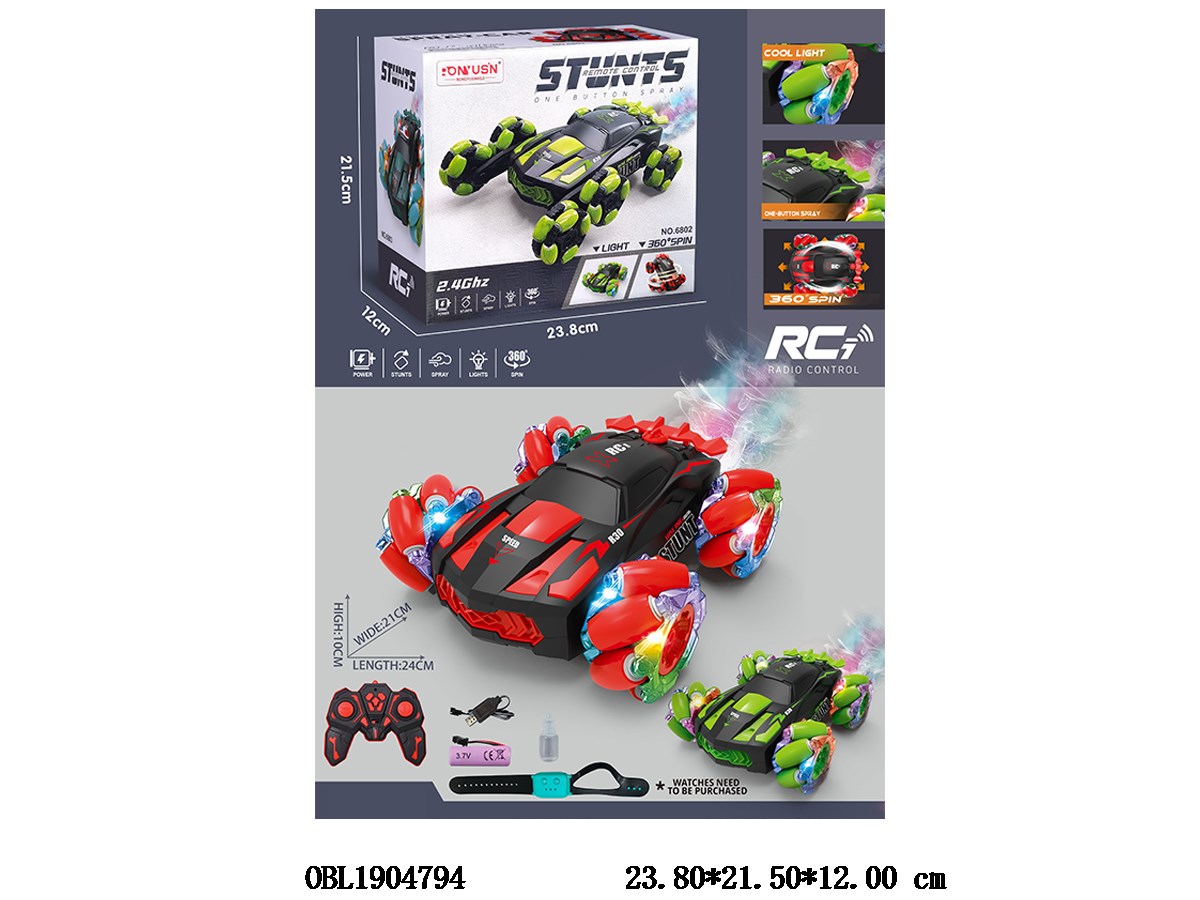 Home > R/C Car > Four wheel remote control stunt side driving with light, music, spray, USB cable, body 3.7v, lithium battery pack, electric remote control, 2 * AA, no power pack, 2.4G frequency, 2-color mixed single remote control