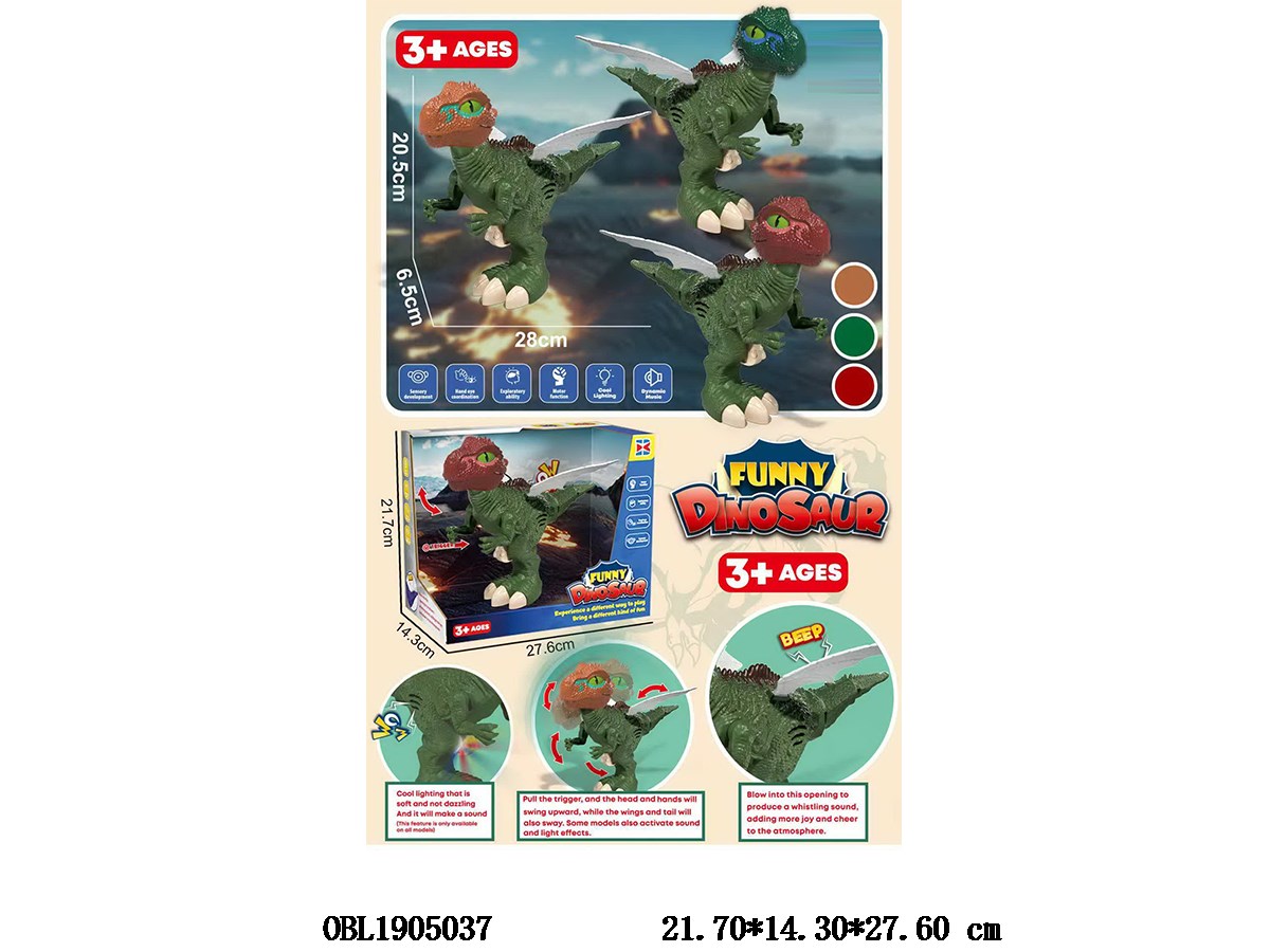 One legged dinosaur press board with lighting, sound effects, movable head, tail, wings for whistling, 3 * LR44 package with electricity, 3 colors mixed
